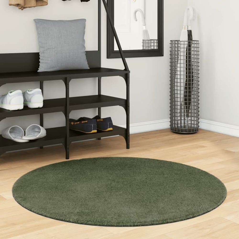 Hopkins 100cm Polyester Round Non-Slip Washable Rug – Forest Green